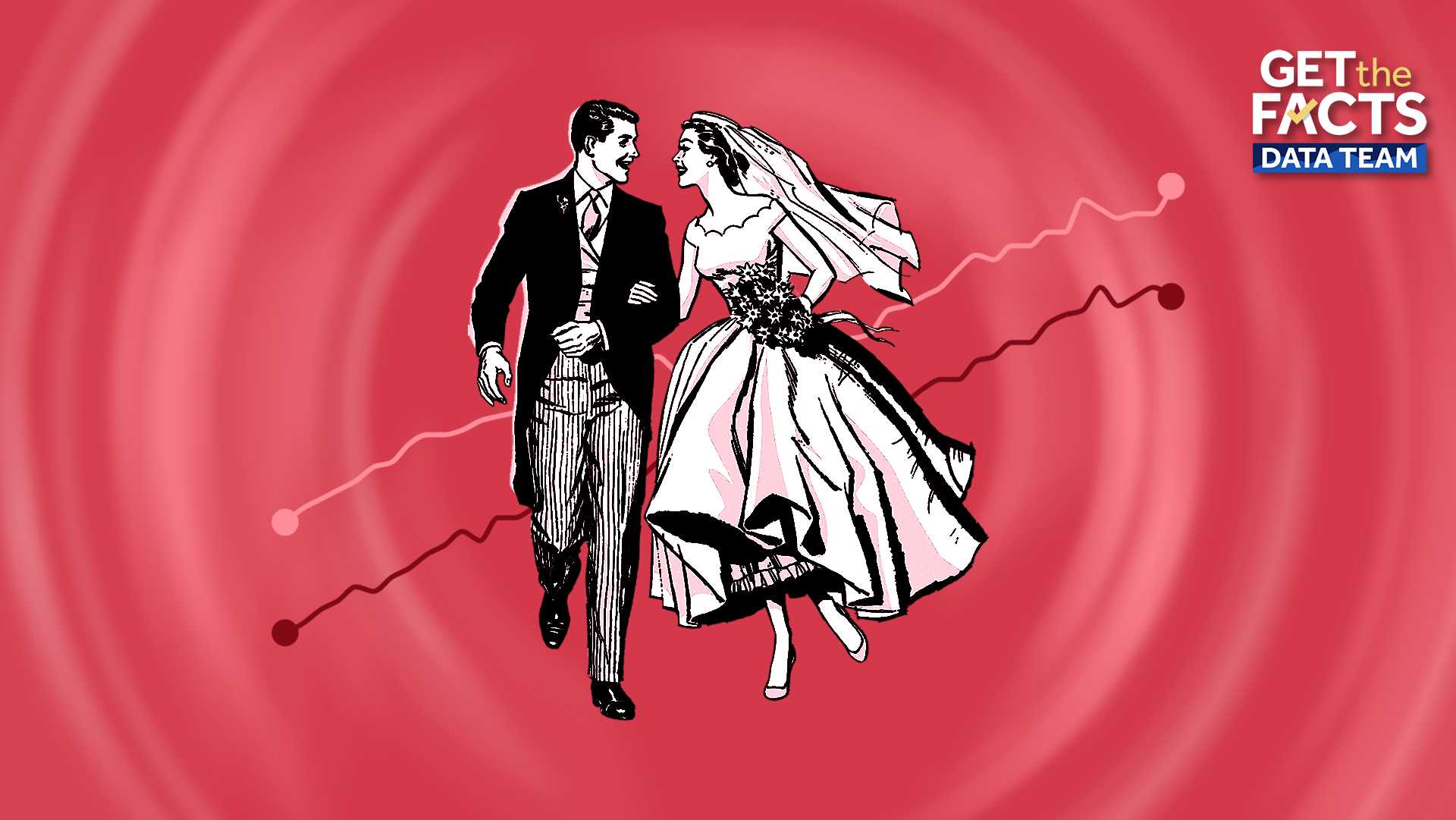 The ages of men and women on both their wedding day and the day they get divorced have been consistently rising, according to data from the U.S. Census and the Centers for Disease Control and Prevention.In 2025, the median age of people getting married for the first time was 28.4 for women and 30.8 for men. Just 50 years ago, the median ages were 21.1 and 23.5, respectively.Related video above: Couples get married at the library on Valentine’s DayWhy Americans are getting married later in lifeUniversity of Texas professor Marci Gleason from the Department of Human Development and Family Sciences said there are multiple reasons Americans are choosing to wed later in life. Gleason said couples no longer believe that marriage is necessary to advance beyond the early stages of their relationship. Instead, it’s now seen as more of an end goal.“Rather than being a cornerstone of adulthood, marriage is a capstone of adulthood,” said Gleason. “So, people are much more likely now to get married after they’ve done all the other aspects of becoming an independent adult.”Another reason for the shift was the availability of birth control, Gleason said. The Supreme Court made it accessible to married couples in 1965 and to everyone by 1972.“There was obviously also a lot of social stigma around having sex outside of marriage. That doesn’t exist for a lot of the culture now, or at least not to the same extent,” Gleason said.What about divorces? Americans are older when they get divorced for the first time: men and women have more than a decade on their predecessors when comparing the median age of their first divorce in 2023 versus 1975. Data on divorces does not exist from 1991 to 2007. However, it’s available pre-1990 from the National Center for Health Statistics and post-2008 from the U.S. Census Bureau. Gleason points out that it’s harder to mark the dates of divorces than it is for marriages. It’s true for a number of reasons, including trial separations and people forgetting to fill out the paperwork. But, the data still shows a clear rise in age, with divorcees going from being 27.9 years old for women and 30.1 years old for men to 41.9 years old for women and 43.3 years old for men across the 48-year time span. For both marriage and divorce, men tend to be about one to two years older than women. That may be shifting, though. Gleason notes, “People are more likely to be similar in age when they get married now than they have been in the past.”Divorces tend to hit their spring peak in March and April, then again in August and September, according to an NPR report.PHNjcmlwdCB0eXBlPSJ0ZXh0L2phdmFzY3JpcHQiPiFmdW5jdGlvbigpeyJ1c2Ugc3RyaWN0Ijt3aW5kb3cuYWRkRXZlbnRMaXN0ZW5lcigibWVzc2FnZSIsKGZ1bmN0aW9uKGUpe2lmKHZvaWQgMCE9PWUuZGF0YVsiZGF0YXdyYXBwZXItaGVpZ2h0Il0pe3ZhciB0PWRvY3VtZW50LnF1ZXJ5U2VsZWN0b3JBbGwoImlmcmFtZSIpO2Zvcih2YXIgYSBpbiBlLmRhdGFbImRhdGF3cmFwcGVyLWhlaWdodCJdKWZvcih2YXIgcj0wO3I8dC5sZW5ndGg7cisrKXtpZih0W3JdLmNvbnRlbnRXaW5kb3c9PT1lLnNvdXJjZSl0W3JdLnN0eWxlLmhlaWdodD1lLmRhdGFbImRhdGF3cmFwcGVyLWhlaWdodCJdW2FdKyJweCJ9fX0pKX0oKTs8L3NjcmlwdD4=