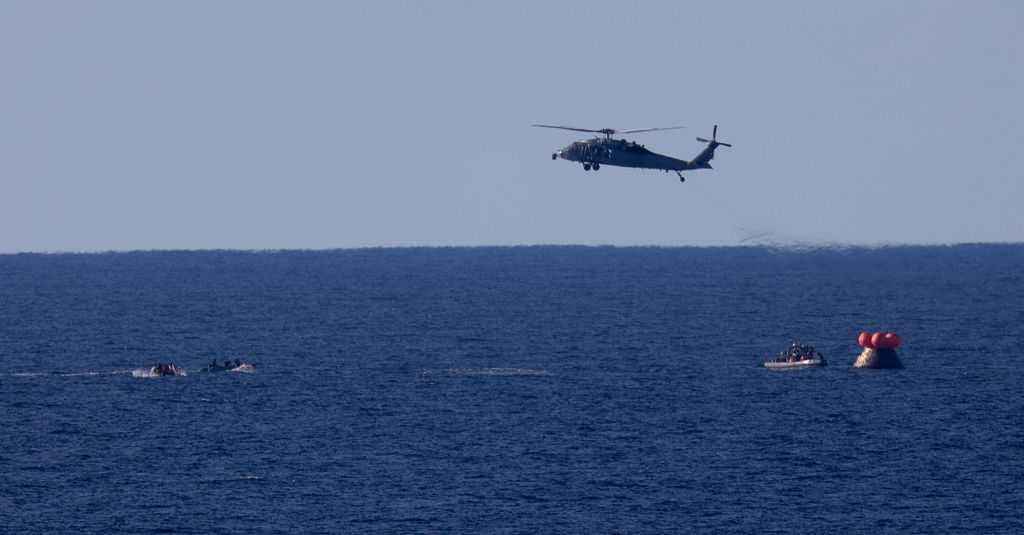Crews were also working to recover the Orion spacecraft — an effort that was expected to take five to six hours.