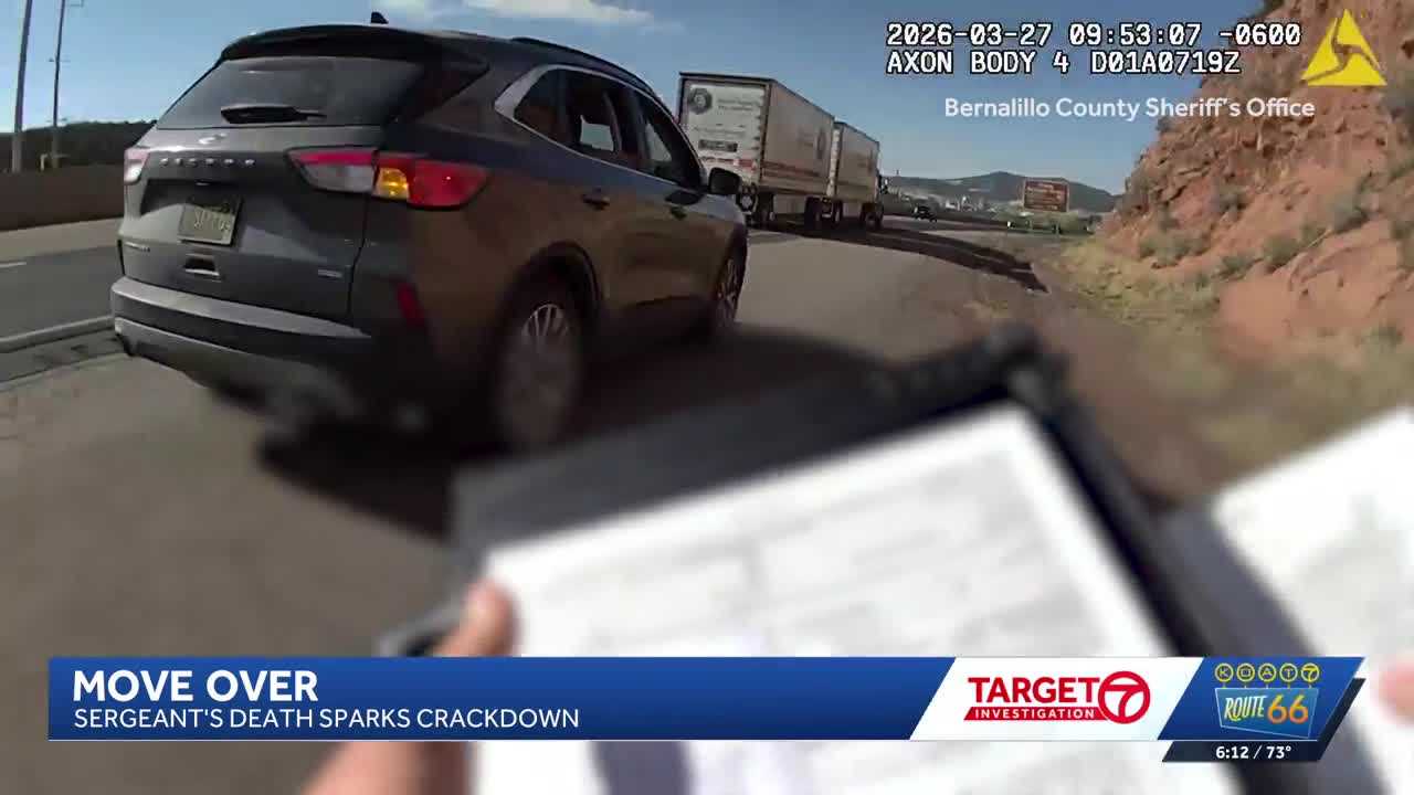 The Bernalillo County Sheriff’s Office has launched a crackdown on motorists who fail to comply with the state’s move over law, which requires drivers to move over for first responders, tow truck drivers, or anyone pulled over on the side of the road.The crackdown comes following the death of Bernalillo County Sheriff’s Sergeant Michael Schlattman, and a subsequent Target 7 Investigation has found the law is rarely followed and rarely enforced until now.In a matter of two hours, 67 motorists were pulled over for not moving over when there were emergency crews on the side of the road. “I wasn’t expecting 67 just in one day,” Sheriff John Allen said. “You would think there would be a lower number and people would have been paying attention, moving over and following the law, but of course that’s not the case.”The consequences of not following the move over law can be deadly. Last month, Bernalillo Schlattman was killed during a traffic stop when a semi-truck slammed into the back of his patrol car. “I’m very fortunate, I’m very fortunate. Almost sometimes there’s a little bit of guilt because why did I survive and why do others have to die?” said Former Bernalillo County Sheriff’s Deputy Paul Jacobs. Twenty years ago, Paul Jacobs was nearly killed on the same stretch of road, prompting him to lobby for the state’s move over law. “It was a similar situation, and why did I walk away? I wish everybody could walk away, but it’s not the reality that we live in,” Jacobs said.At the time Schlattman was killed, Target 7 discovered the law had only been enforced 16 times statewide since it was passed in 2005. “So I think now we always have to look at what we can do better,” Sheriff Allen said. “And Sergeant Schlattman’s death brought more attention to this.”Sheriff John Allen launched Operation Schlatty, the nickname of the fallen sergeant. “It’s designed to protect first responders,” Sheriff Allen said. “Everyone thinks it’s just for law enforcement, even for tow truck drivers, ambulance, roadside workers. Slow down, pay attention, move over because anything can happen. We want everybody to be safe, including workers.”The investigation into Schlattman’s death is being conducted by the Rio Rancho Police Department, and there has been no determination whether charges will be filed against the semi-truck driver. “I wouldn’t doubt if charges were brought, but I don’t know, so I can’t say as a fact,” Allen said, “I will tell you, I watched the body camera. That was rough to watch. And then I watched it in slow motion. And you can tell that the driver’s not paying attention, and he should have moved over.”Sheriff Allen plans to order more operations in the future to crack down on people who don’t move over and wants to strengthen the penalties. Currently, if caught, motorists face the same penalties as someone caught for speeding.