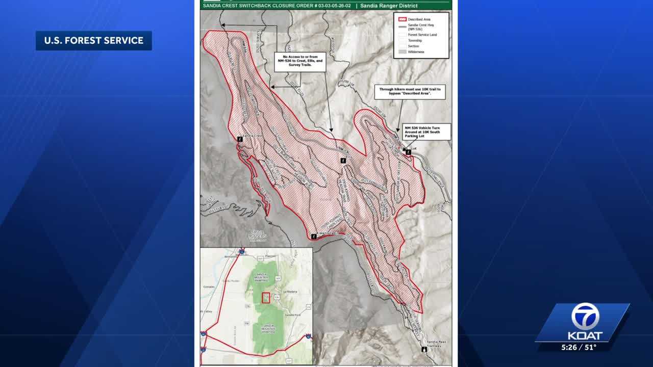 Visitors to the Sandia Mountains will soon face extended closures near the crest as federal officials begin a major forest management project aimed at reducing wildfire risk and protecting critical infrastructure.The Cibola National Forest and National Grasslands issued a closure order for parts of the Sandia Crest area, effective April 30, 2026, at 6 a.m. The restrictions are tied to the “Switchback” Hazard Tree and Fuels Reduction Project, which will involve mechanized thinning across approximately 140 acres.According to Sandia District Ranger Ken Born, the work is necessary due to a buildup of dead and downed trees in the area.“The forests around the Sandia Crest contain a significant number of dead trees, both standing and down,” Born said. “A high-severity wildfire could damage or destroy critical infrastructure because of the high fuel loading around the Crest Communication Site.”The project will focus on land surrounding the Sandia Crest Recreation Area and the Sandia Crest Communication Site, both of which serve key roles for recreation and regional communications systems. Officials say the thinning effort will not only reduce wildfire risk but also create defensible space for firefighters and improve safety for visitors and staff.The closure includes several popular destinations and access points:Ellis TrailheadSandia Crest Recreation SitePortions of New Mexico State Highway 536 beyond the 10K Trailhead parking lot (just past mile marker 11)Officials emphasized that these closures are necessary to protect the public from hazards associated with heavy equipment operations and falling trees during the project.The order will remain in effect through Jan. 15, 2027, at 6 a.m., unless lifted earlier. Detailed maps, closure boundaries, and updates are available on the Forest Service website.