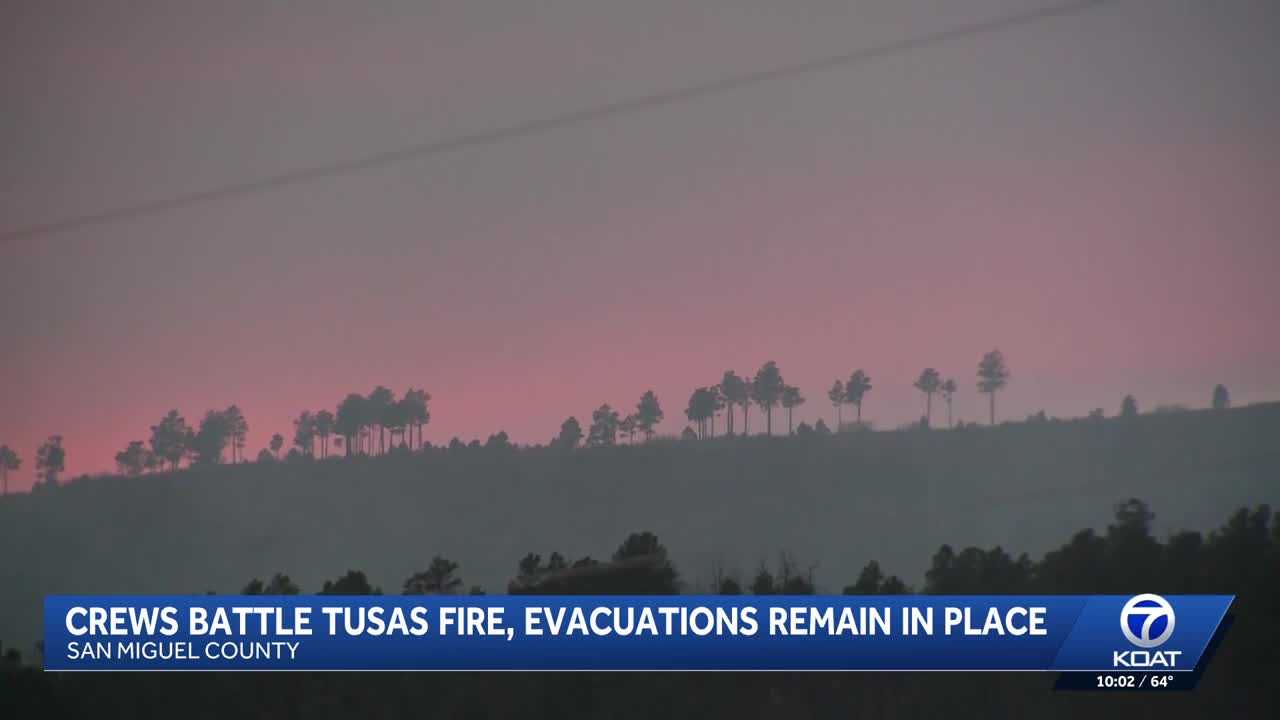 Crews are working to contain the Tusas Fire in San Miguel County, which has burned approximately 250 acres since it started around 4 p.m. Wednesday in the Las Tusas area, west of Sapello. Eric Alarid, who co-owns a small company called DesertGate Internet, expressed concern about the fire’s proximity to his cell phone tower. “We’re pretty concerned about it,” he said. “We’re probably less than a mile away from our tower. And that tower just went up.” Melissa Wright, an agriculture agent for San Miguel County, has set up an official animal evacuation shelter at the Las Vegas Fairgrounds. “Livestock is our largest industry,” Wright said. “Goats, sheep, horses, cattle are the main ones that we would be accepting.”She added that animals “would be co-mingling in the arena at this point.” Wright noted that there is plenty of room at the fairgrounds and urged those bringing animals to provide at least a day’s worth of food. If you need to evacuate animals after hours, you are urged to call Wright at 505-454-1497 Ext: 1001.State forestry officials are encouraging residents to act quickly to evacuate livestock and prepare important documents.“Right now is a great time to move that livestock,” said George Ducker, public information officer. “That’s the evacuation that takes the longest. Getting animals in trailers. They’re scared. There’s a lot of wind.” Ducker explained that the fire is burning in an unburned area with fresh fuel, which contributed to heavy smoke on Wednesday.“This fire is actually an unburned area. So it’s a lot of fresh fuel. That’s what was kicking up a lot of that smoke,” he said. Fire crews, including 130 personnel, are working to establish containment lines along the flanks of the fire using bulldozers, water tenders, and hand lines, according to Ducker. More than 24 hours after the fire started, haze continues to linger in the area, and the road remains blocked off Thursday night. KOAT crews witnessed deputies with the San Miguel Sheriff’s Office stationed at the road where evacuations have taken place. Evacuations remain in place for residents along New Mexico State Road 266 between mile markers 3 and 6. Residents between mile marker 3 and Highway 94 are on Set status, while those on County Road A4A to Highway 94 remain in Ready status. An evacuation shelter has been established at the Abe Montoya Recreation Center at 1751 North Grand Avenue in Las Vegas, New Mexico. The cause of the fire is under investigation, and it is burning timber, piñon-juniper and grass on private land.