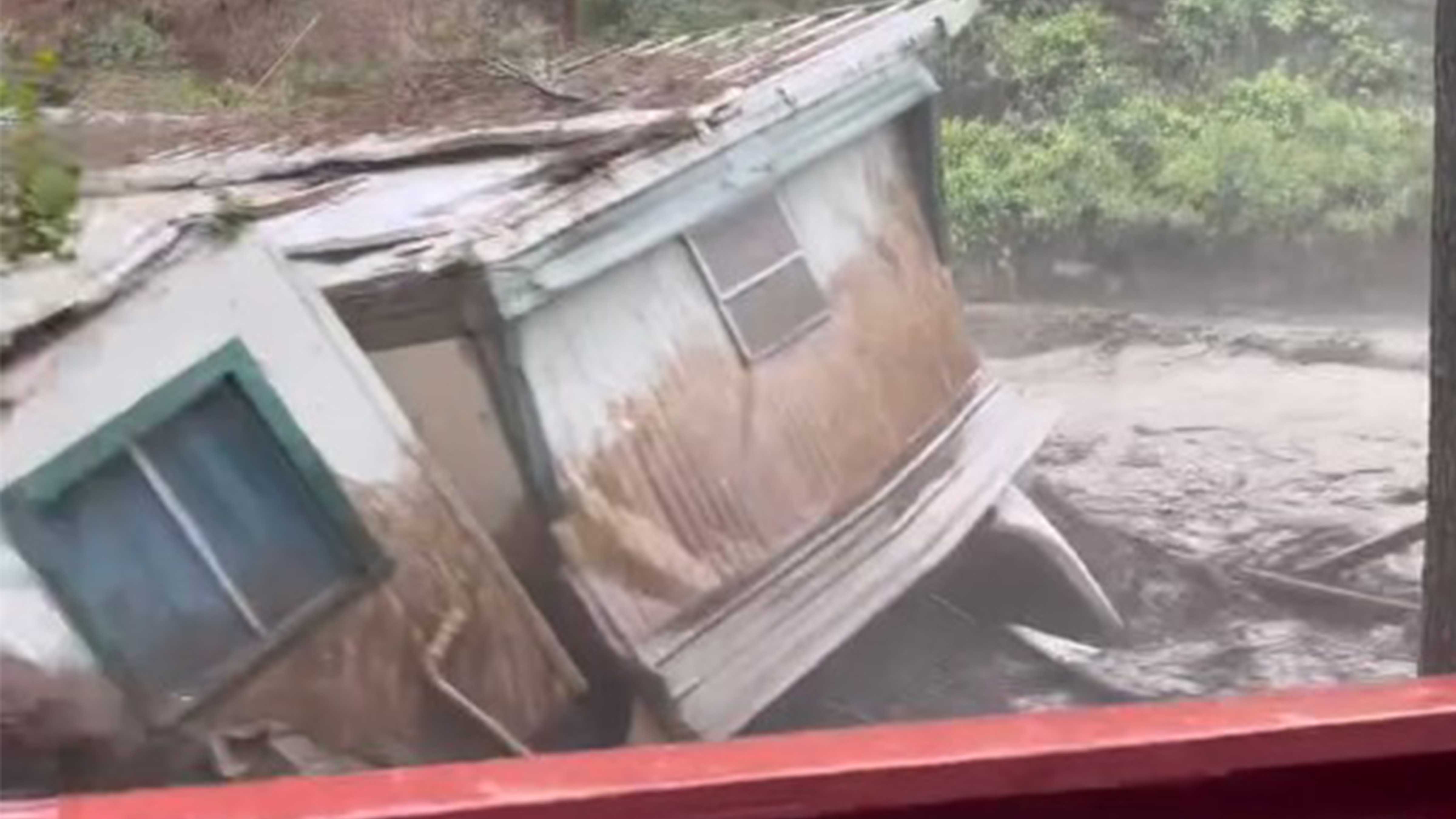 Incredible video obtained by ABC News shows a home being swept away by floodwaters in Ruidoso.